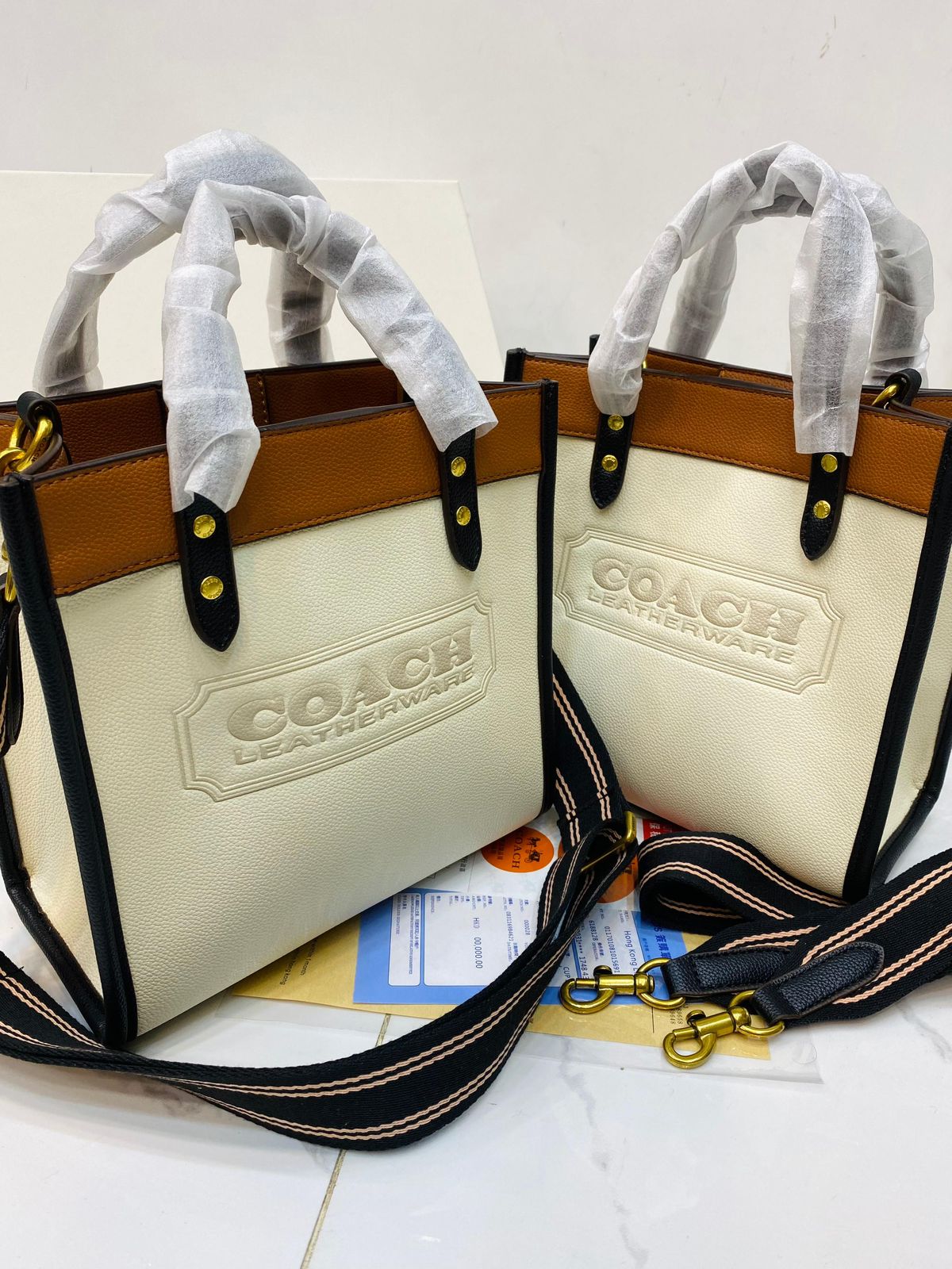 Crafted from polished pebble leather and/or coated canvas, often with suede or colour‑block accents.