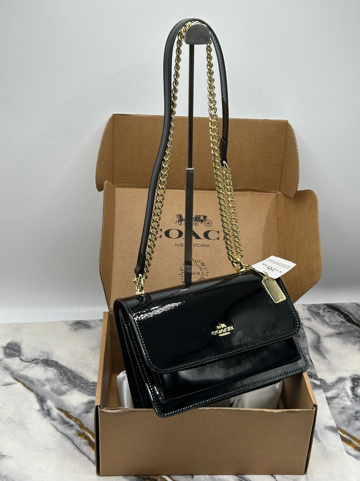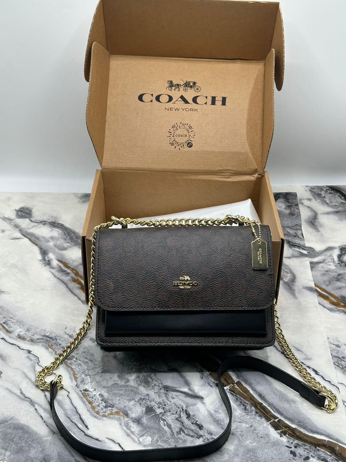 Stylish compact shoulder or crossbody handbag from Coach, designed for everyday elegance