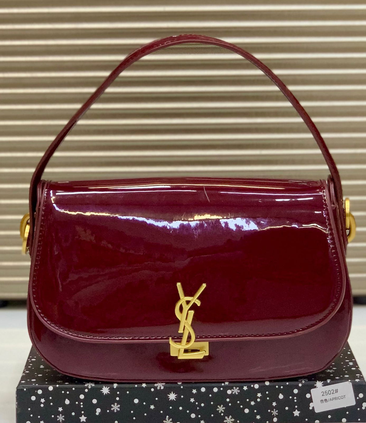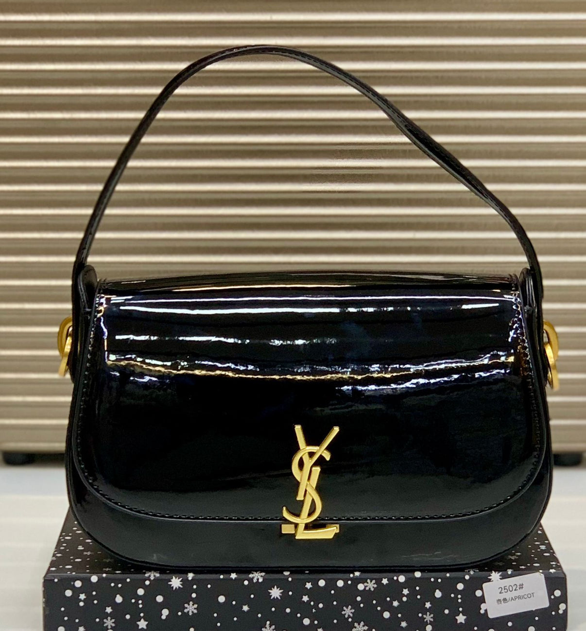 Features iconic metal logo hardware at the front (e.g., the “YSL” monogram) that doubles as a clasp/closure.