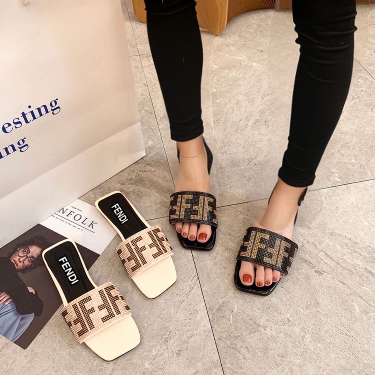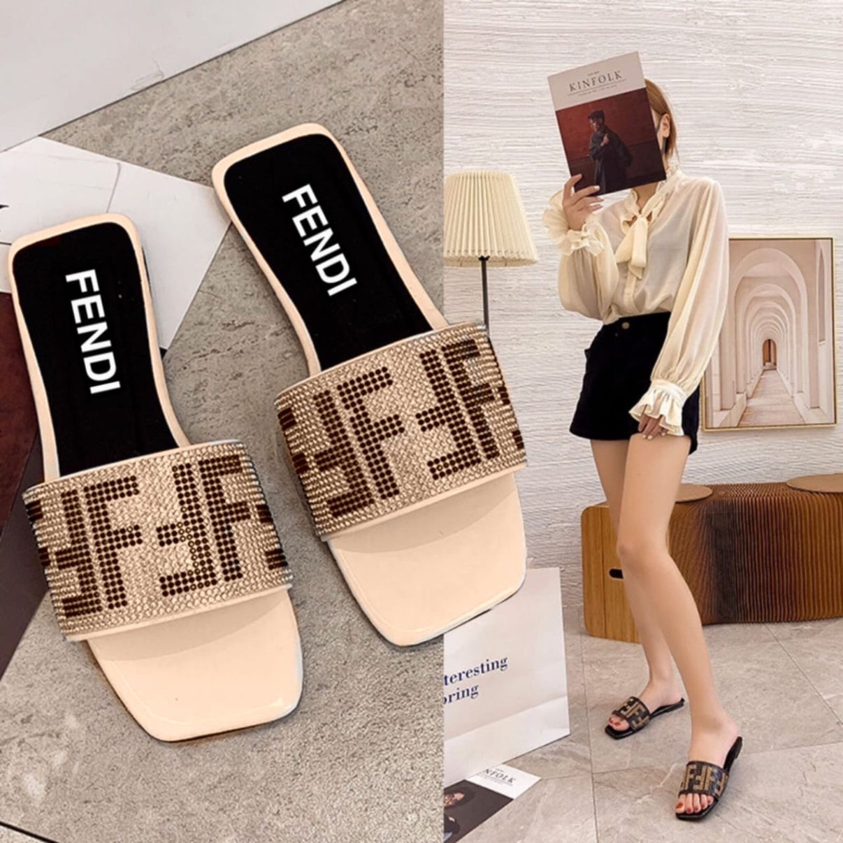 Fendi Diamond Studded Sandals