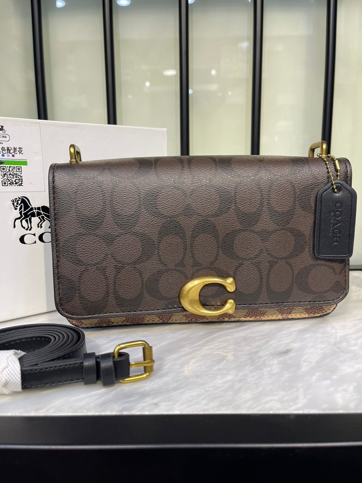 Product details: - Dimensions: 23.5 x 13.5 x 5 cm - Detailed with our C pushpin closure - Two organized compartments, secure interior snap pocket - Snap closure - Outside open pocket - Adjustable shoulder strap for shoulder or crossbody wear - Box & dust bag included