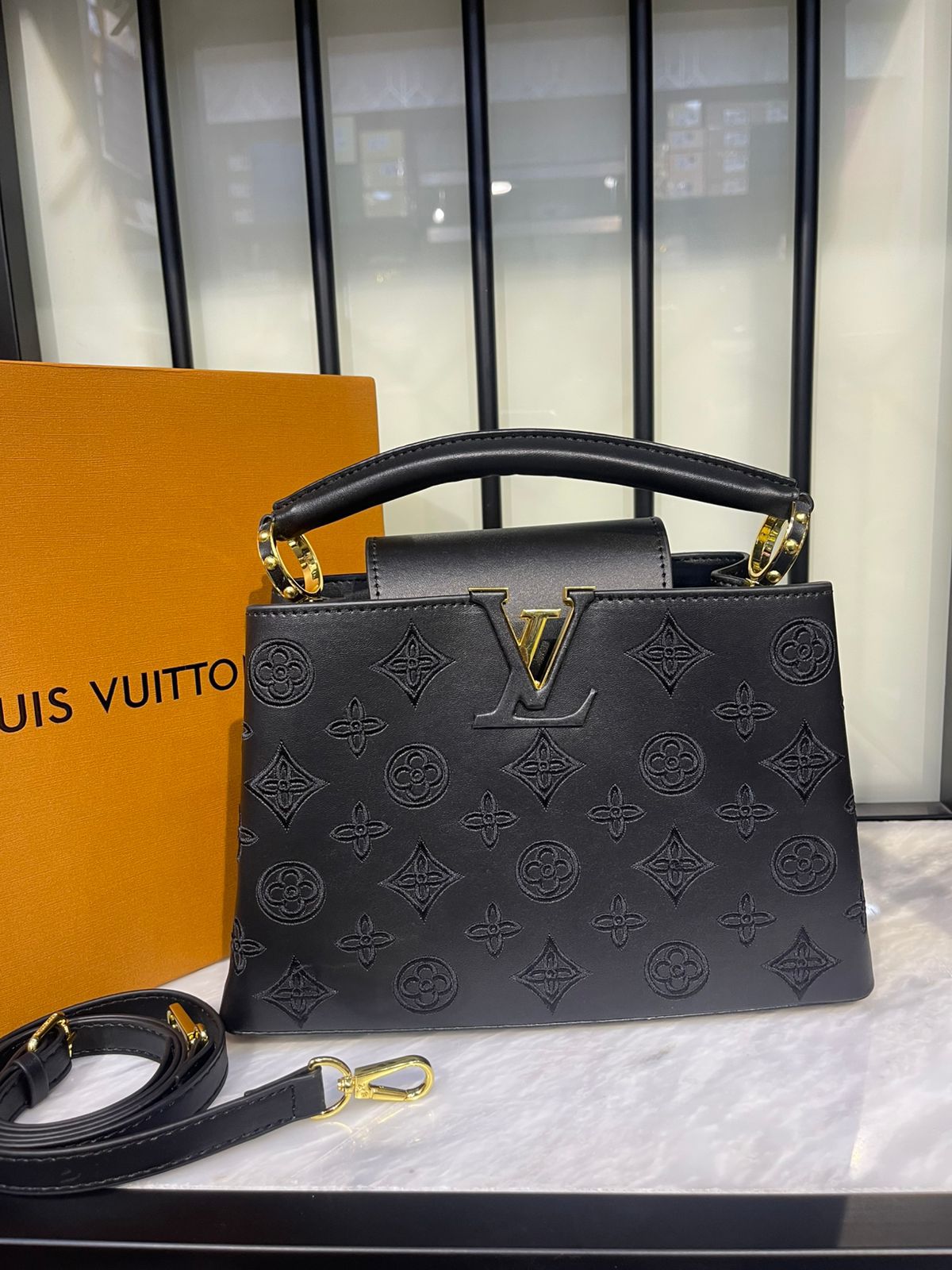 Product details: - Dimensions: 26.5 × 17 × 9 cm - Monogram Flower motif flap - Jewel-like handle mounts - Gold-color hardware - Snap hook to secure belongings - Double carry style: flap inside or outside - Compartmented interior with zipped pocket - 4 protective metal bottom studs - Strap: Removable, adjustable - Box & Dust Bag included