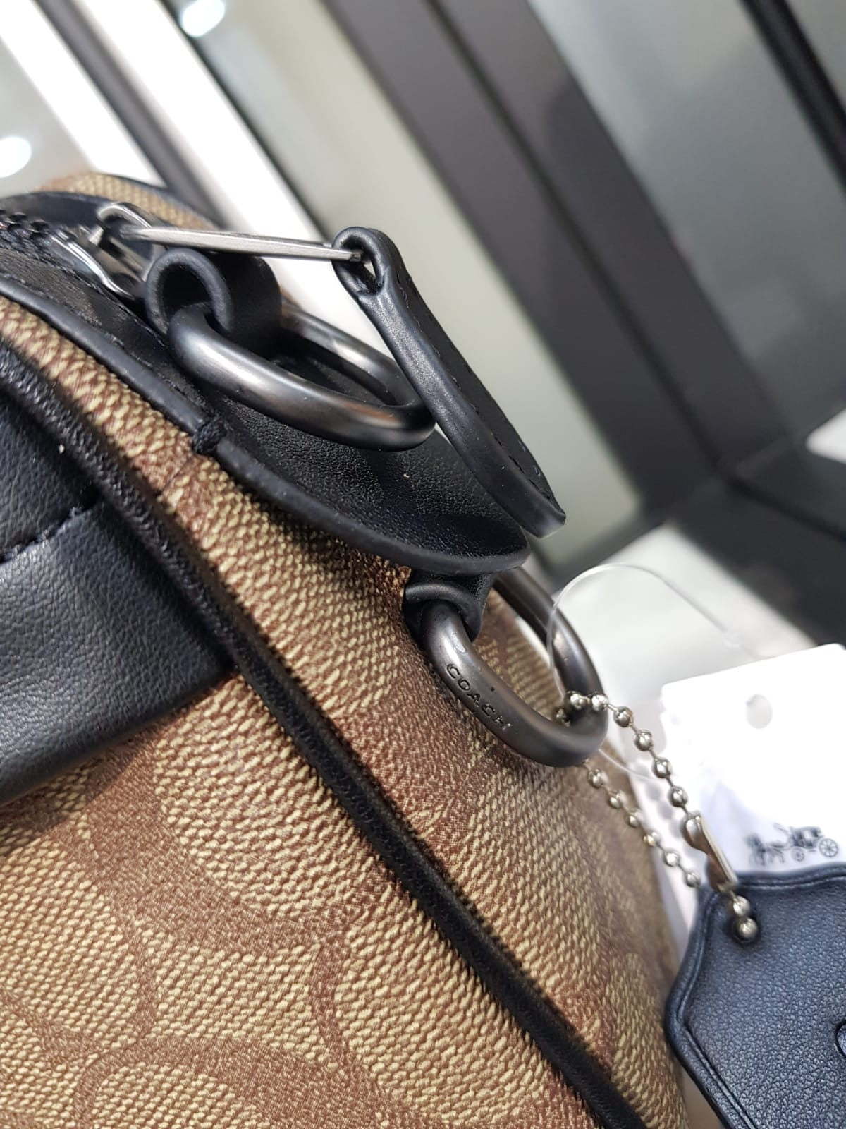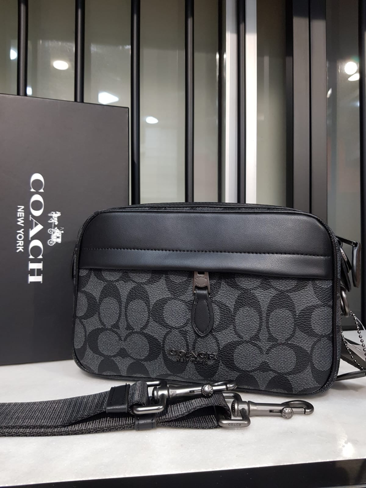 Product details:- Dimensions: - Signature coated canvas and smooth faux leather- Inside multifunction pockets- Double zip closure, fabric lining- Outside slip pocket- Detachable strap for shoulder or crossbody wear- Box & dust bag included